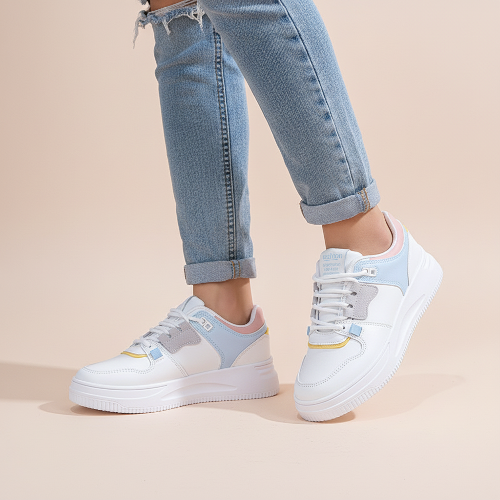 Estas zapatillas combinan un diseño fresco y contemporáneo con materiales resistentes y cómodos, ideales para el día a día. Su estructura ligera garantiza una pisada suave, mientras que la suela con plataforma brinda un toque moderno y estilizado. El interior acolchado ofrece máximo confort, haciéndolas perfectas para acompañarte en tus actividades diarias o salidas casuales.