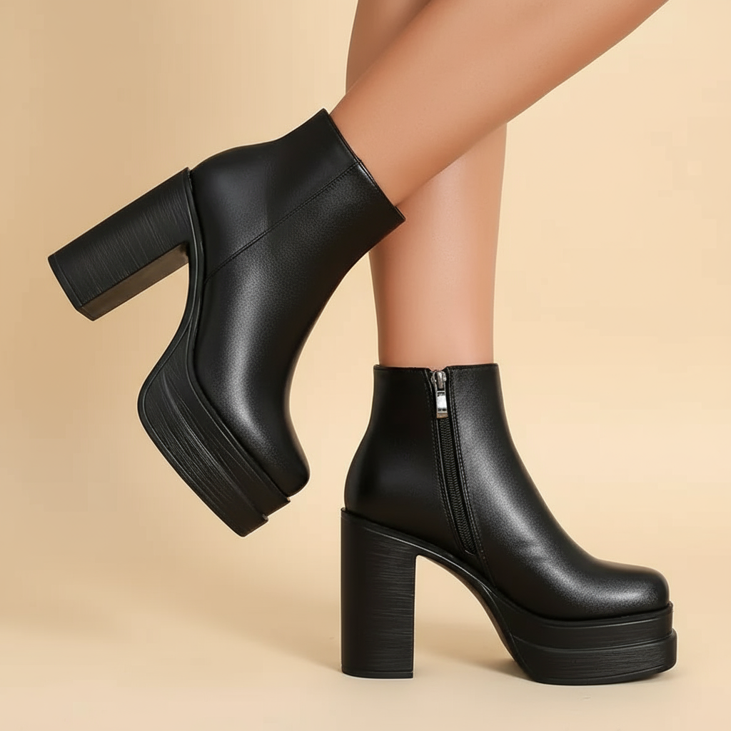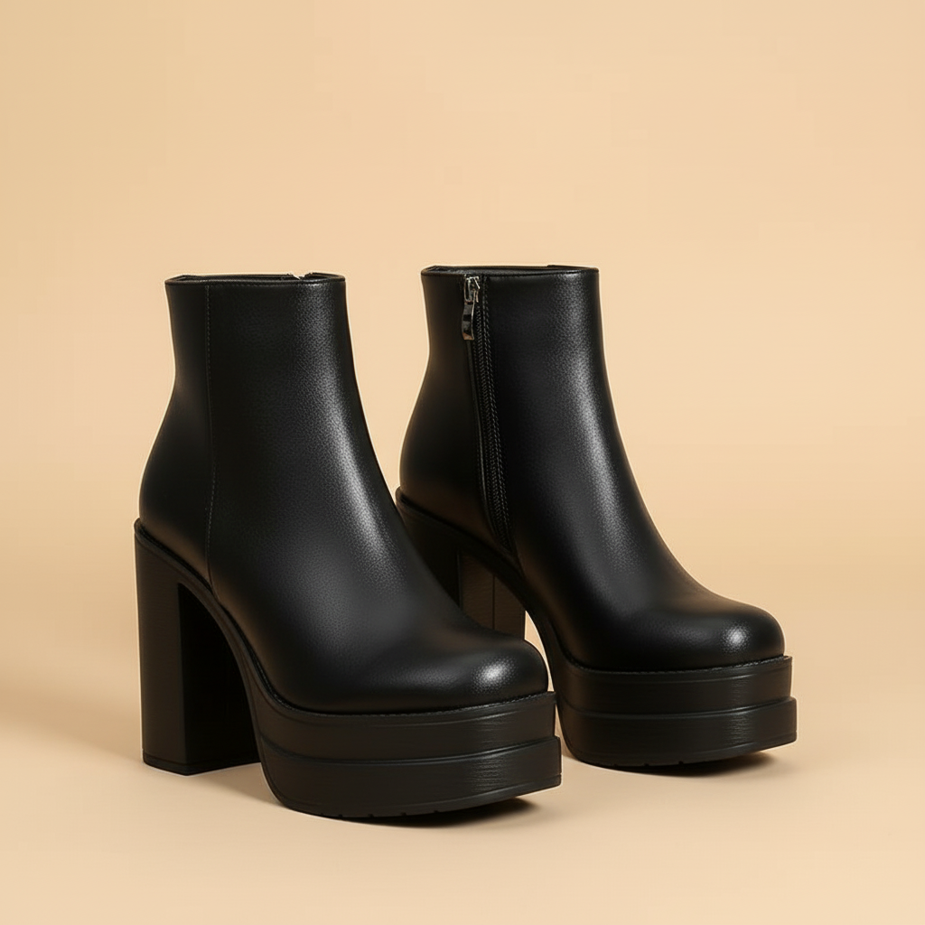 Botines de plataforma con diseño elegante y moderno, ideales para destacar con poder y estilo.