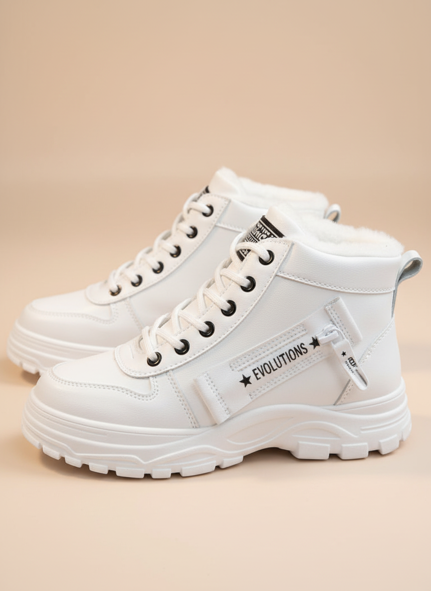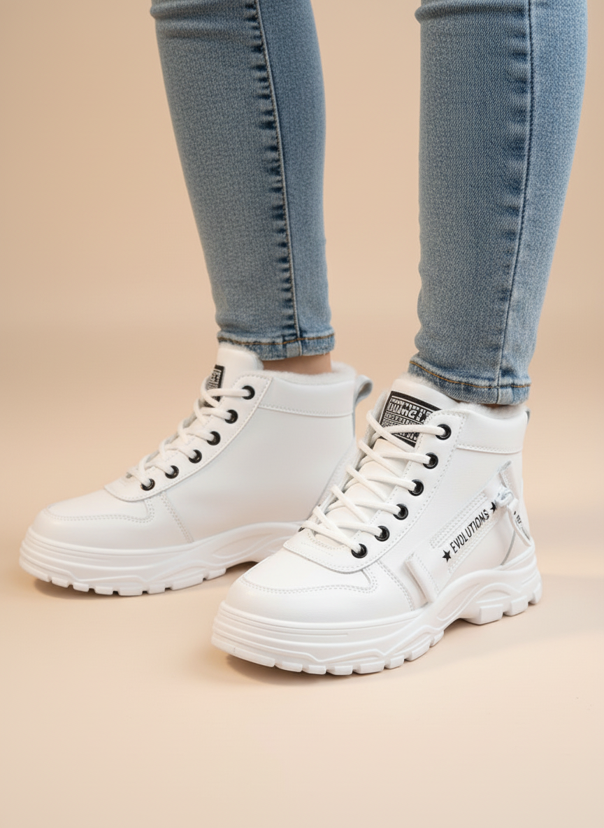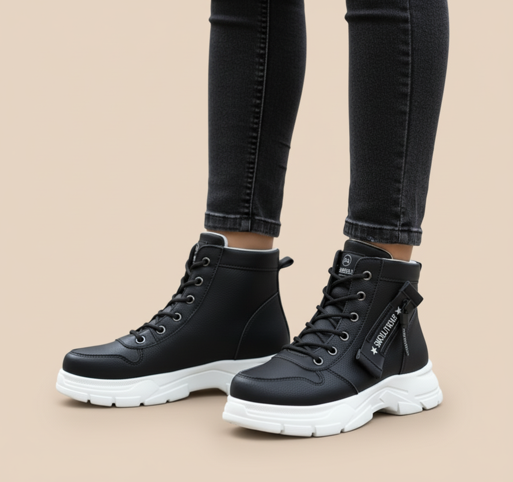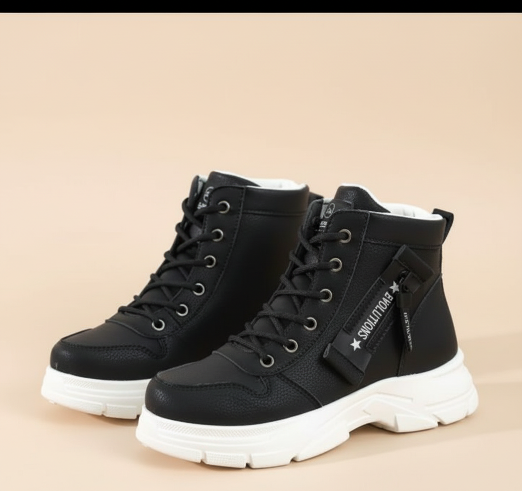 Estos botines ofrecen una combinación perfecta entre moda y funcionalidad. Su diseño con cordones y cierre lateral asegura un ajuste cómodo y práctico, mientras que el interior afelpado mantiene los pies abrigados durante el clima frío. La suela gruesa con textura antideslizante proporciona estabilidad y soporte en cada paso. Son ideales para usar con jeans o ropa casual, aportando un toque contemporáneo y versátil a cualquier outfit diario.