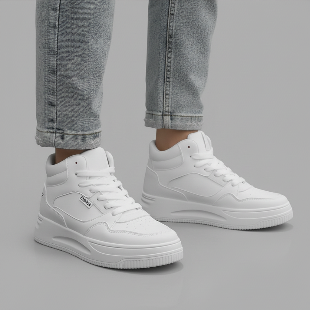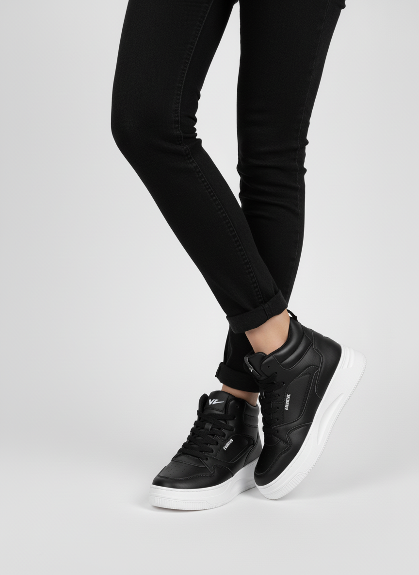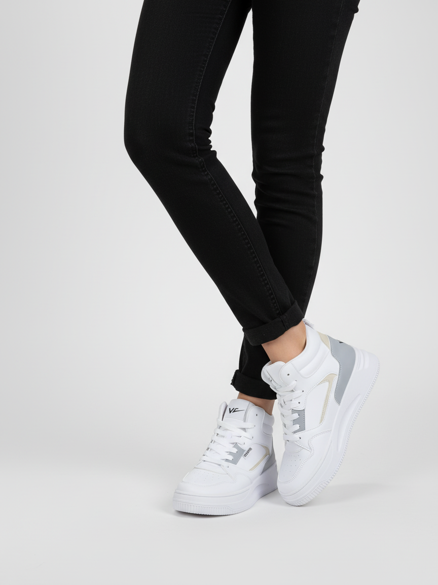 Tenis de estilo moderno con suela alta y diseño versátil. Comodidad y estilo para acompañarte todos los días.