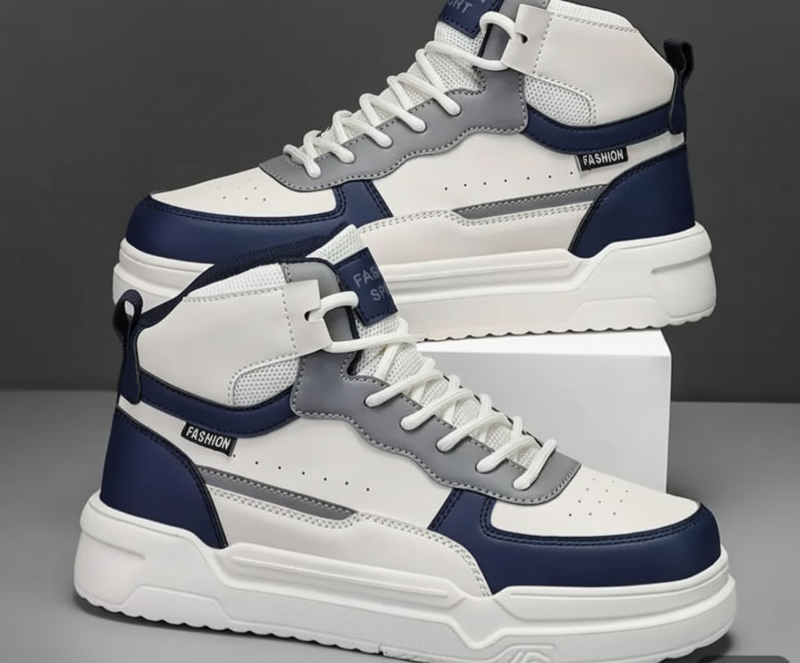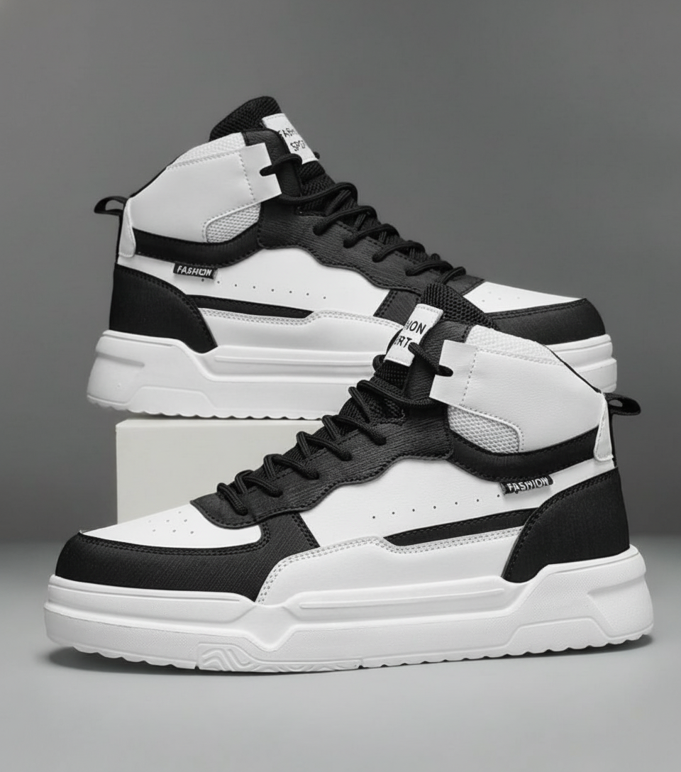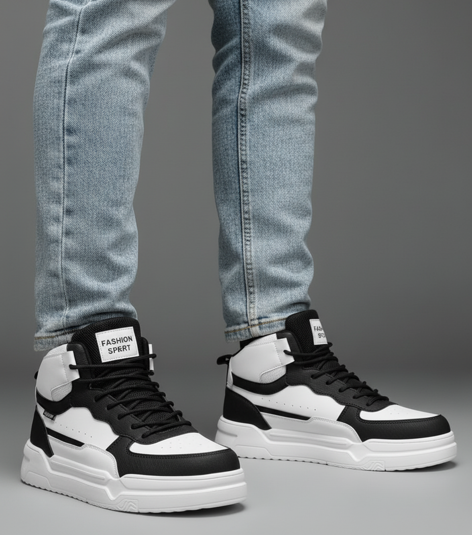Estas zapatillas de corte alto combinan un diseño contemporáneo con materiales resistentes y ligeros que garantizan durabilidad y confort durante todo el día. Su estructura acolchada brinda soporte al tobillo, mientras la suela gruesa ofrece excelente tracción y estabilidad en cada paso. Ideales para outfits urbanos, deportivos o casuales.
