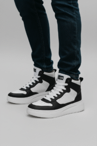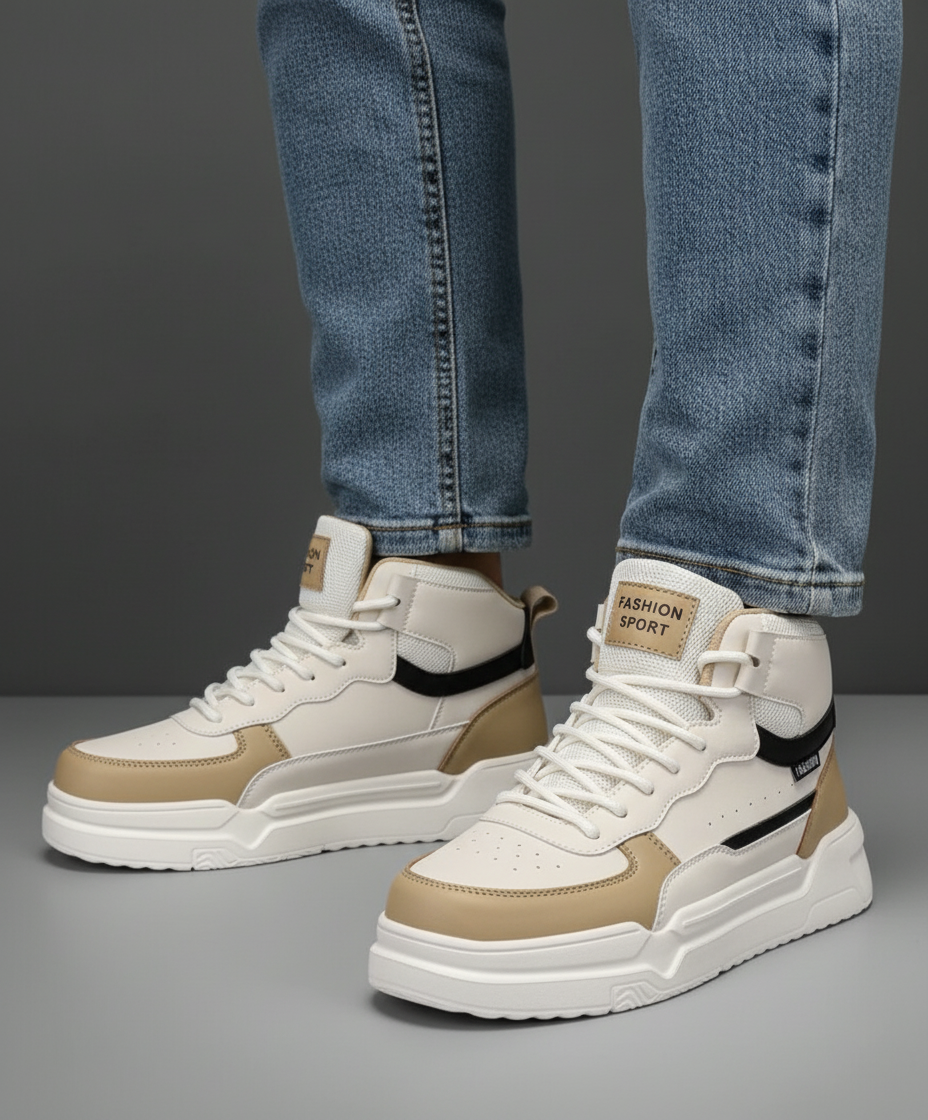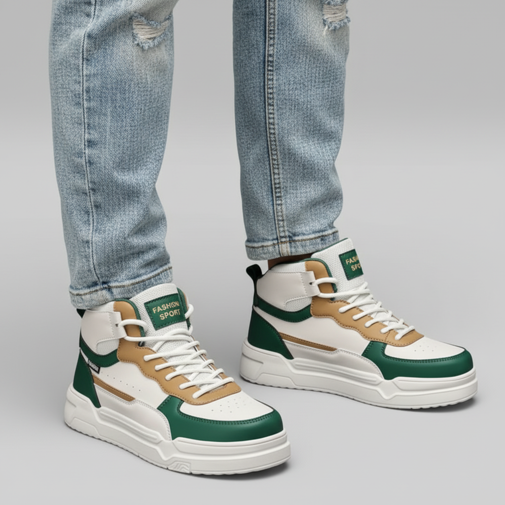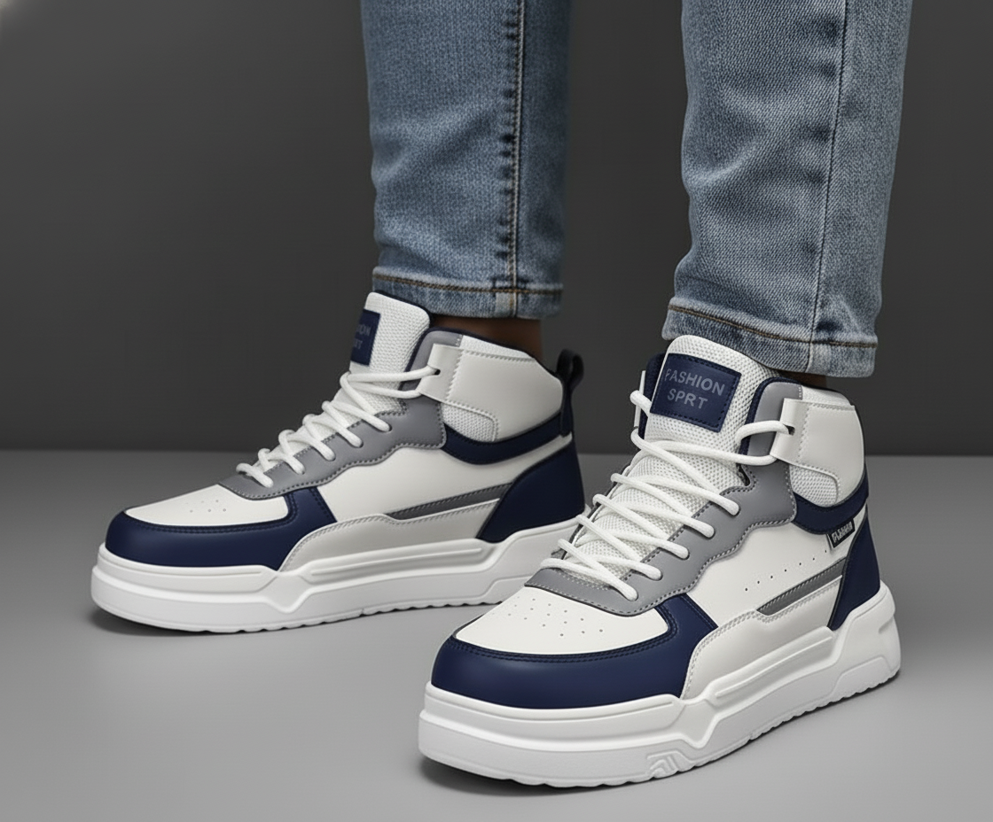 Estas zapatillas de corte alto combinan un diseño contemporáneo con materiales resistentes y ligeros que garantizan durabilidad y confort durante todo el día. Su estructura acolchada brinda soporte al tobillo, mientras la suela gruesa ofrece excelente tracción y estabilidad en cada paso. Ideales para outfits urbanos, deportivos o casuales.
